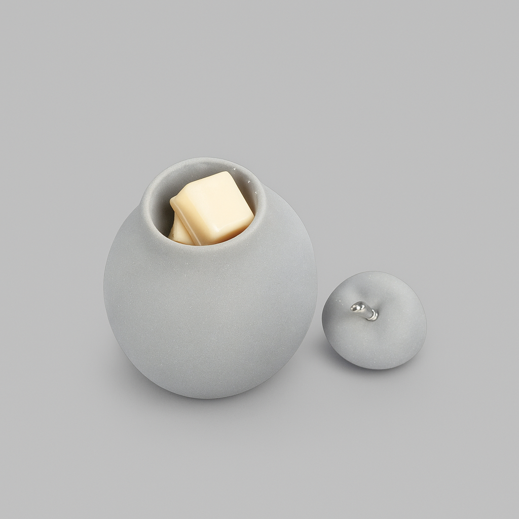 - En ciment laqué mat. - Design authentique. - Fabrication artisanale et forme originale. - Contenance: 45 ml. - Coupelle en ciment amovible.
