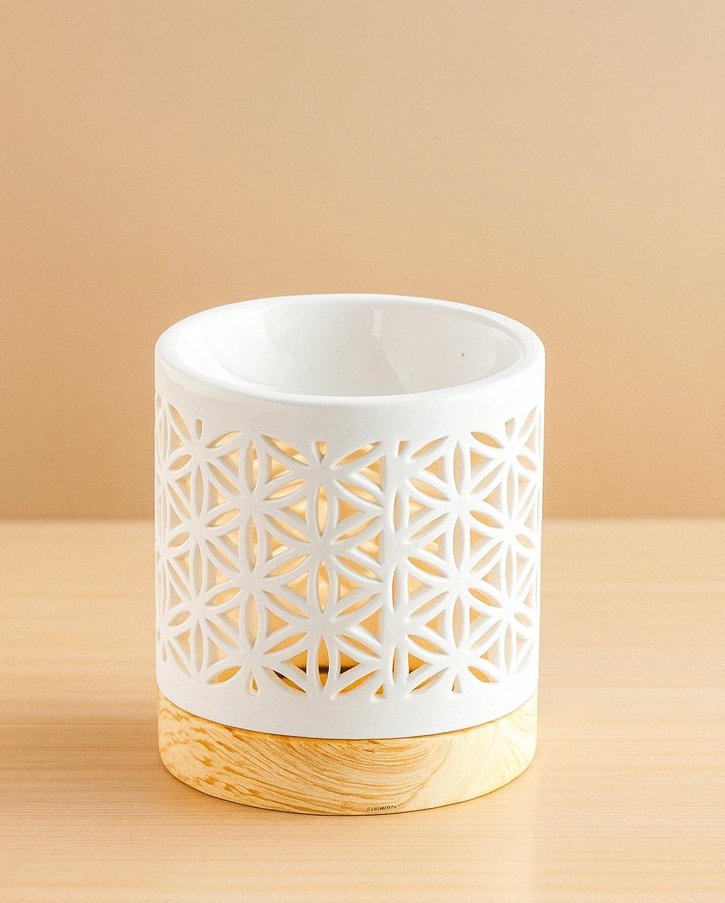 Ce brûle-parfum tout en céramique ajourée reprenant ce motif apporte une touche de spiritualité à votre intérieur.