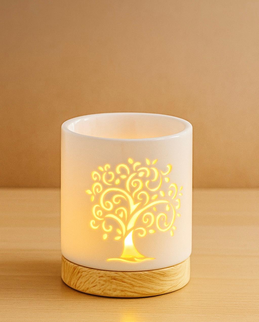 L'arbre de vie, symbole emblématique de spiritualité. Ses ouvertures finement travaillées à la main laissent échapper une douce lueur de bougie, accompagnée de la diffusion des parfums, créant ainsi une ambiance agérable et divinement parfumée.