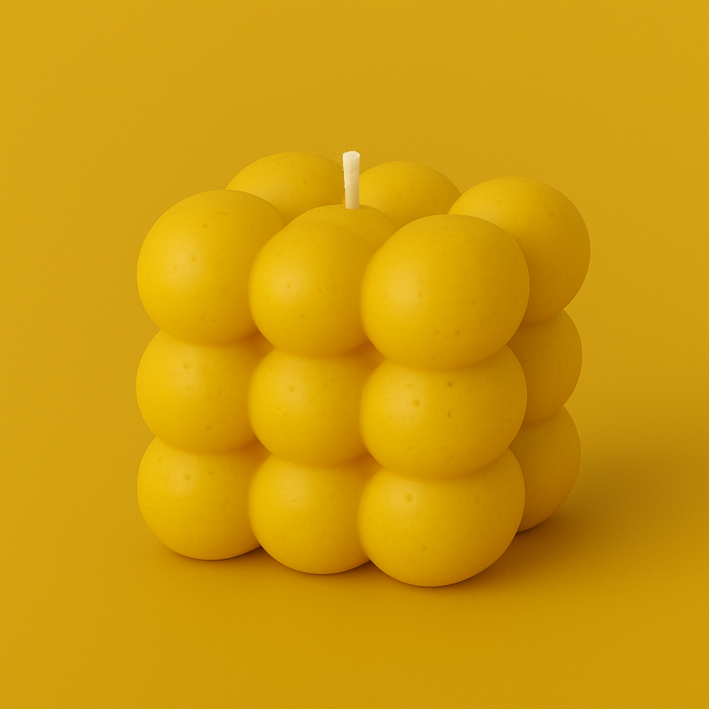 🕯️ Bougie moulée en cire de soja – Cube design à bulles