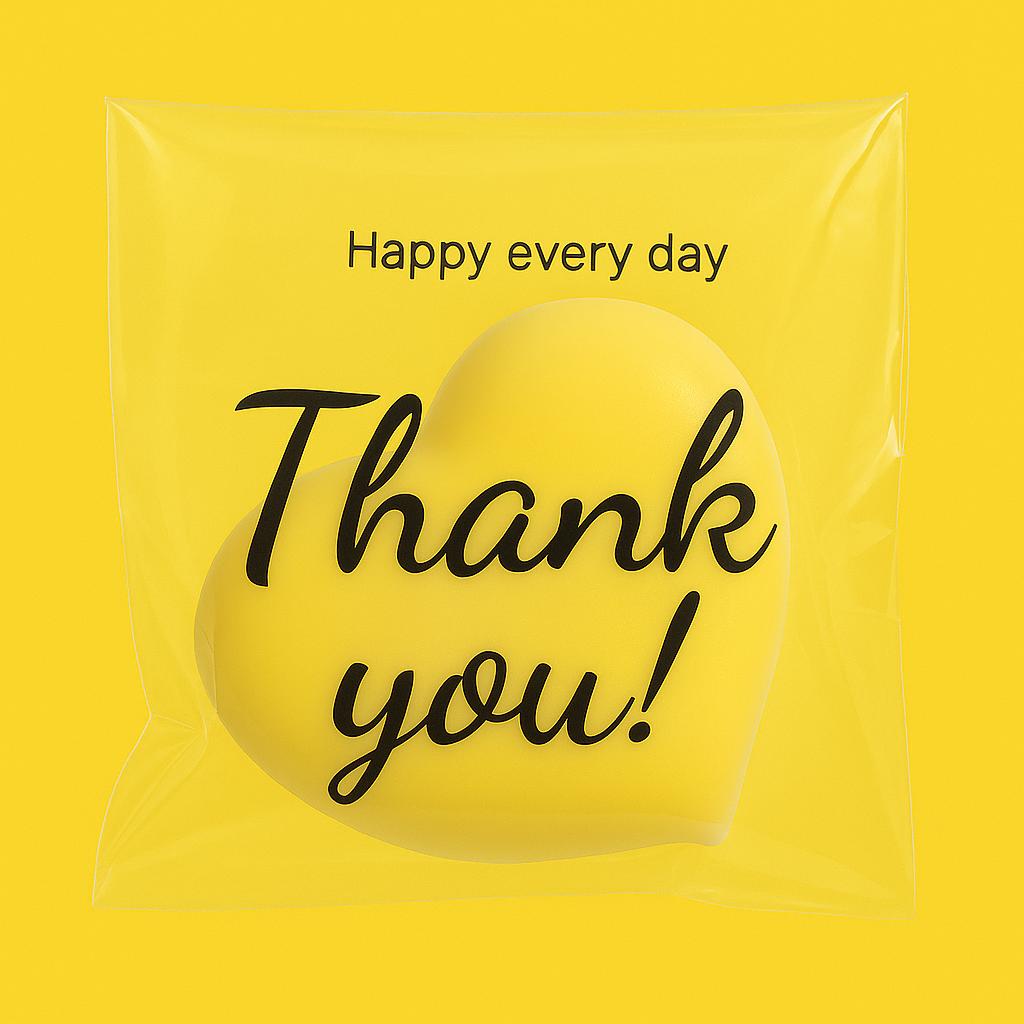 Conditionnement : Petit sachet transparent avec inscription « Thank You »