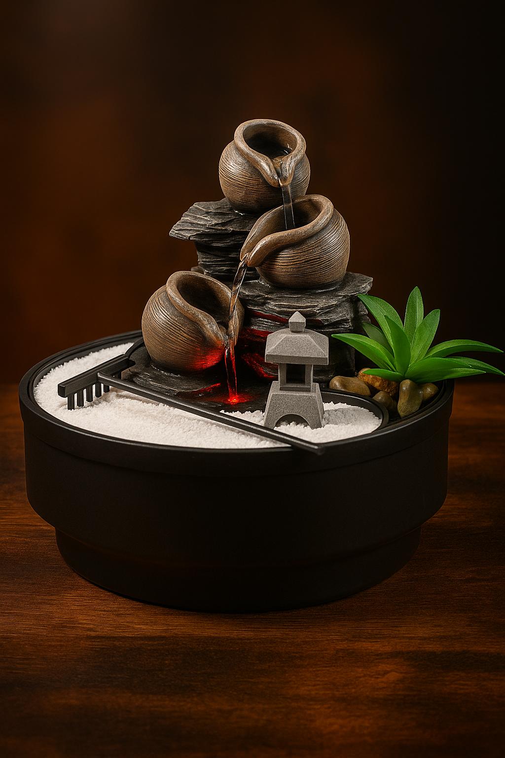 - Jardin zen. - Écoulement d'eau en cascade. - Pompe silencieuse. - Éclairage Led.