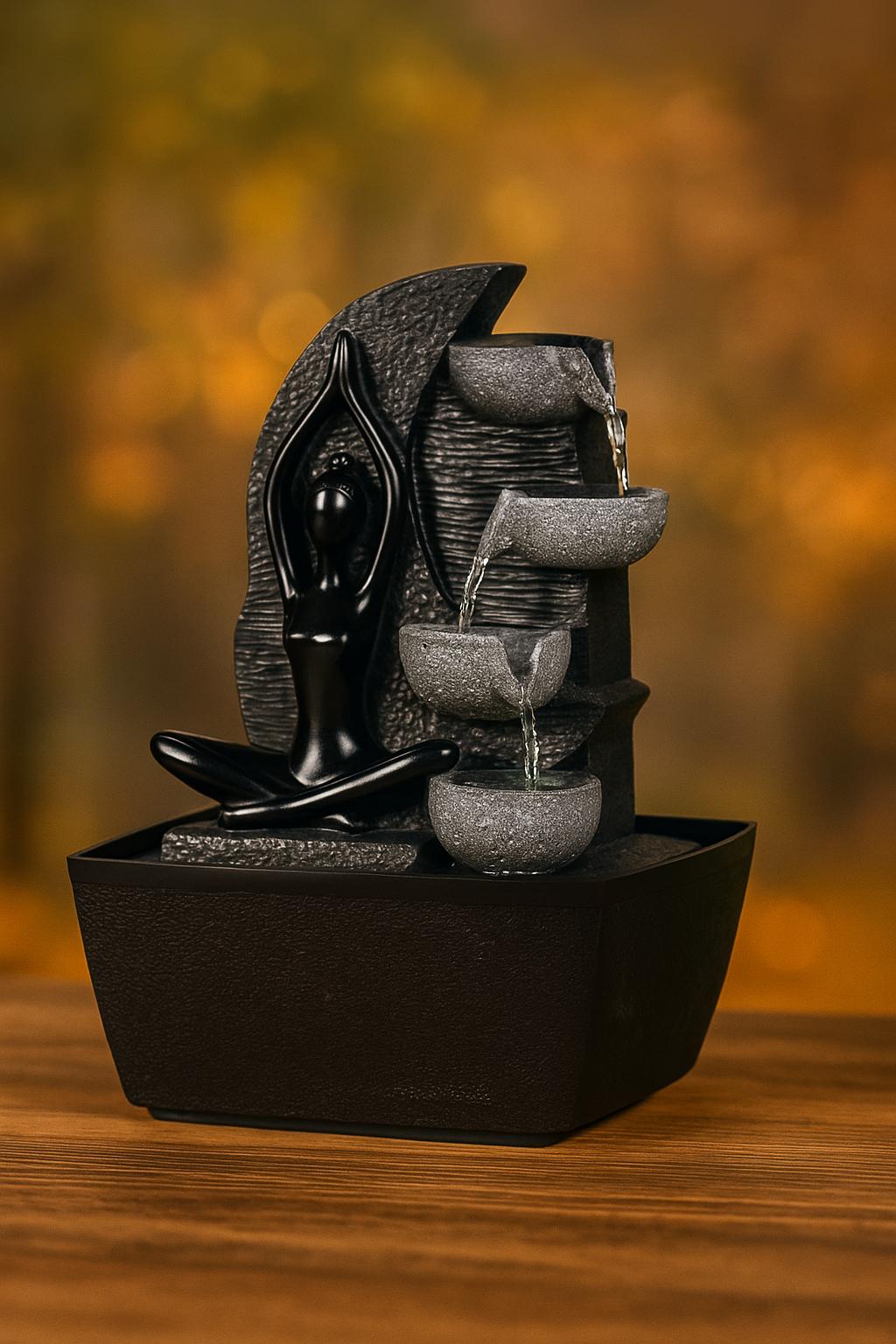 La magnifique statuette en position du lotus vient ajouter de la personnalité à cette fontaine.